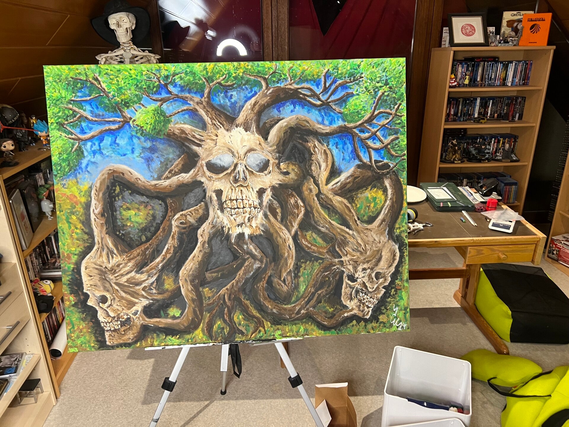 Das Themenbild der Vernissage 2024 des Maler Rings Wörth/Maximiliansau. Da ich selbst ein großer Fan von Totenköpfen seit Kindertagen bin, war klar, dass ich dieses Thema natürlich mit mindestens einem Totenkopf umsetzen musste